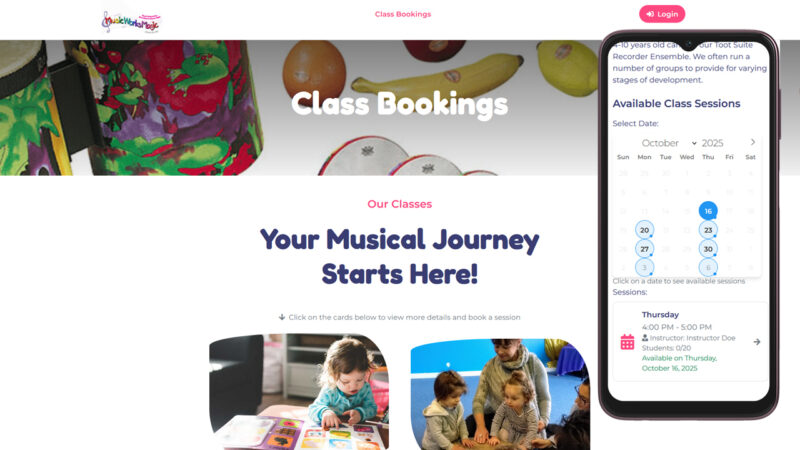 Online booking and payment system for children’s music classes