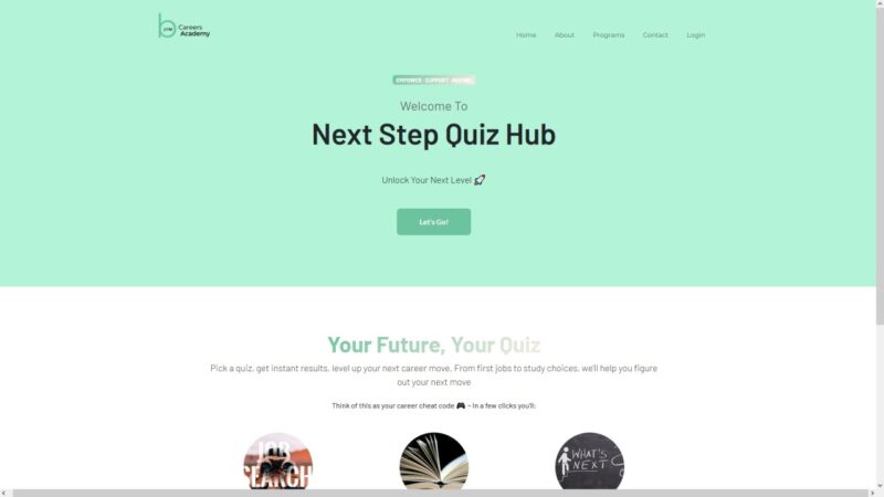 Interactive quiz platform that guides students towards career pathways